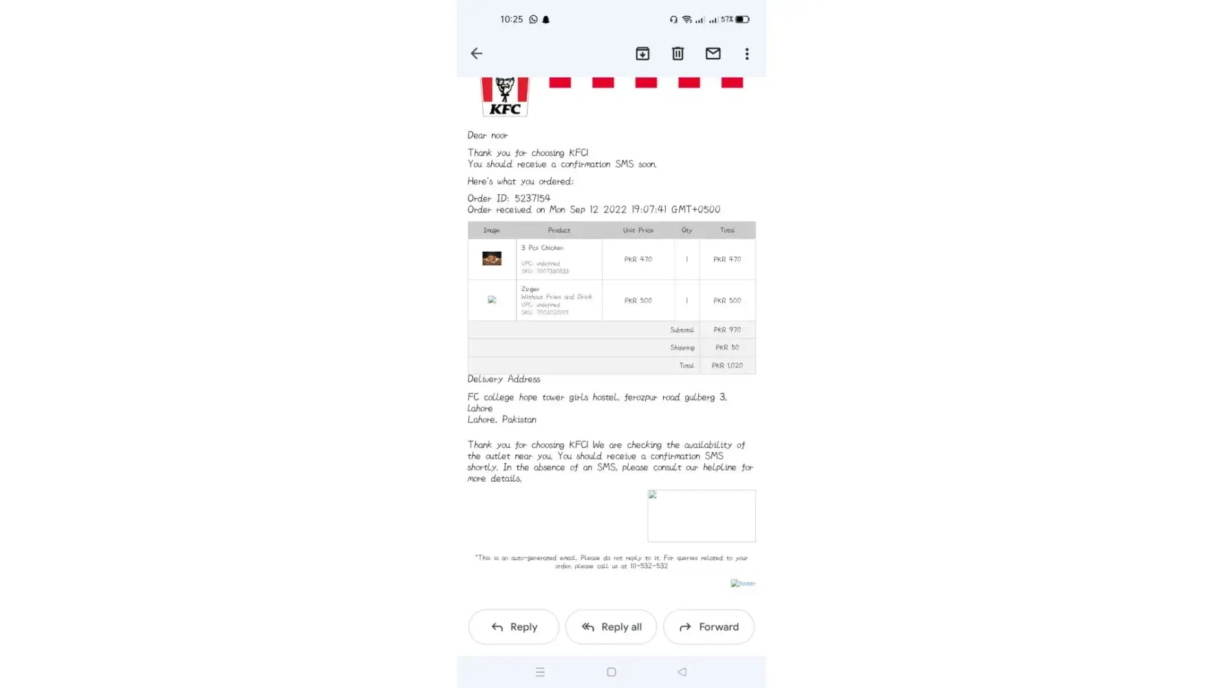 Desired outcome: I hope you will solve out this I'm going to attach a bill summary picture you can check out. And the bad thing is that I paid more than the actual bill and KFC didn't call me back or didn't check the order.