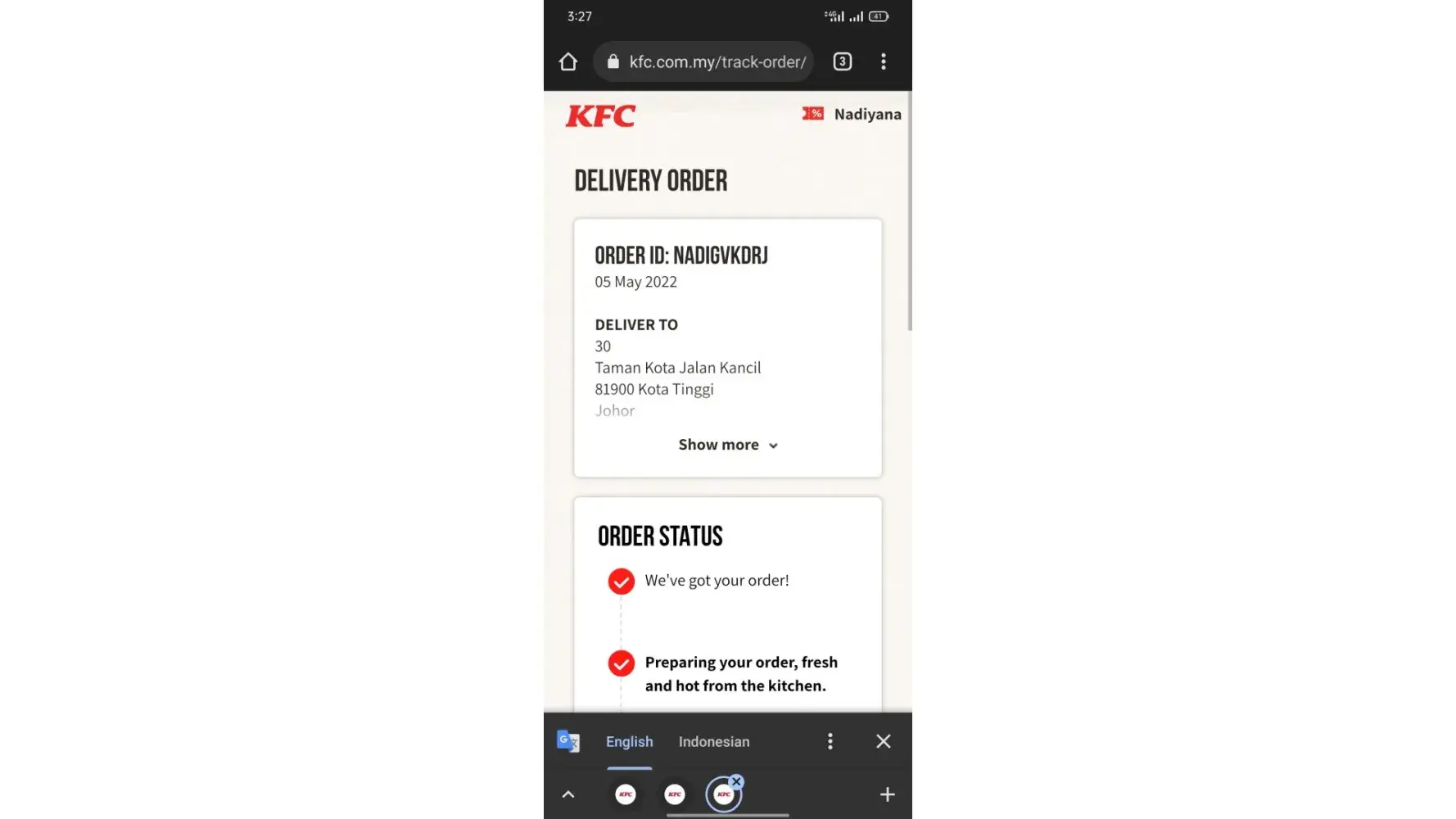 At 19:42, I called back the KFC call center and asked whereabouts of my order and I’ve been told that there was a delay and now it’s ready and is going out immediately.