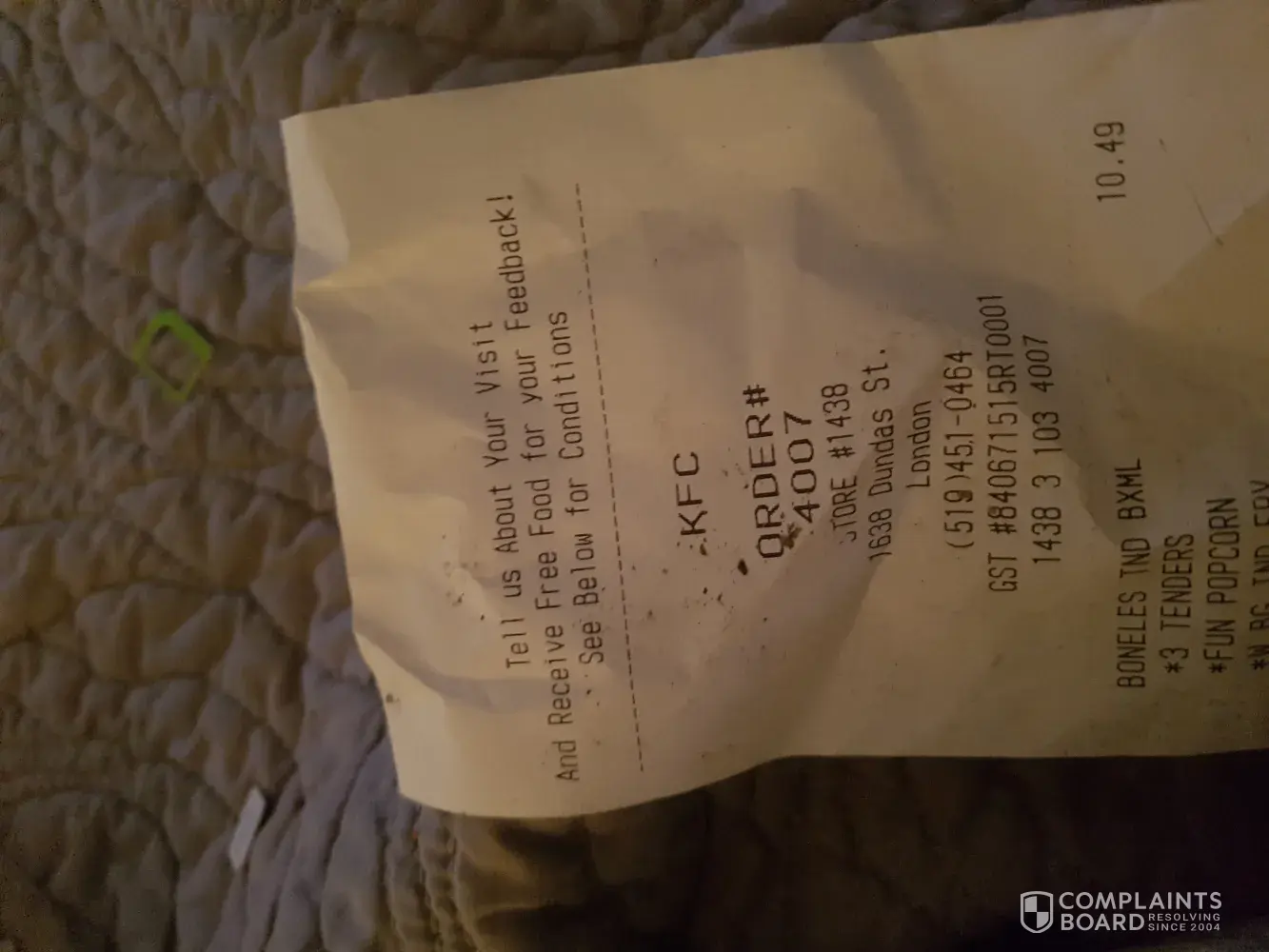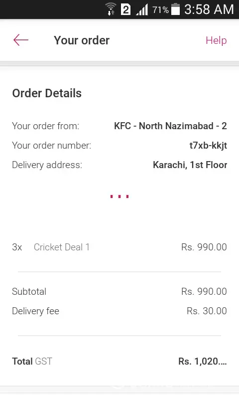 I had ordered kfc chicken online today dated 10/03.. around 4pm.