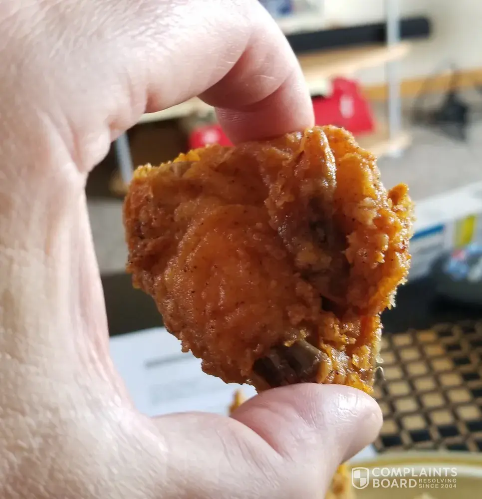 I bought a 12 piece chicken November 3, 2019 around 6:45-7pm at this location and we live right beside the store, when we got home I gave chicken to my daughter and she almost swallowed the piece of brush in the chicken and when we came back to the store these people are so rude didn't apologize and told me that their chicken was fresh, so what if my...