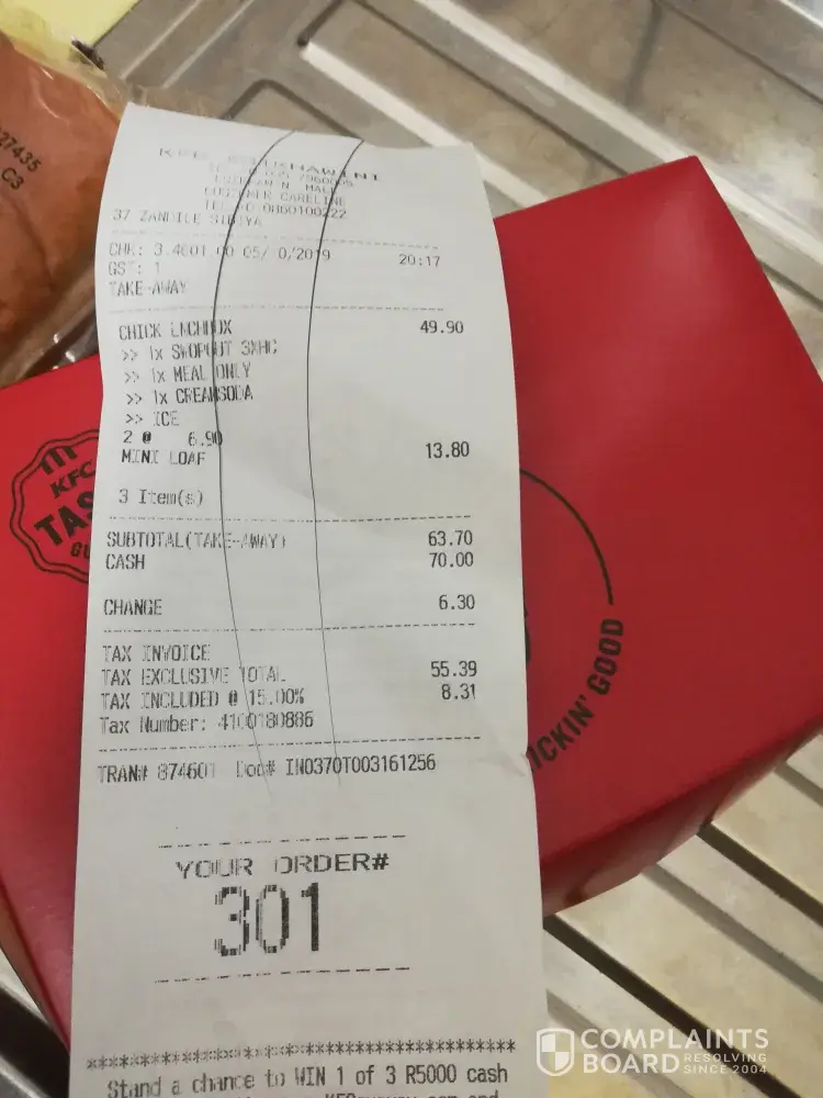 I made an order for a KFC chicken box with small drink, the chicken pieces were gonna be crispy and a Fanta orange cold drink as well as two mini loafs. I paid for the order online.
