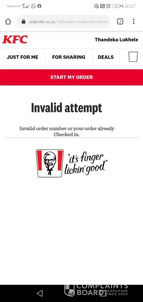 At the Esikhawini branch for collection I was told to check in so my order could reflect, after doing that I got a notification that the order number is invalid or the order has been collected. The cashier told me that I should pay cash again as the will be reversed, so I did so. To my surprise when opening the order it was just a normal streetwise 3 and two mini loafs and was not given as per order online.