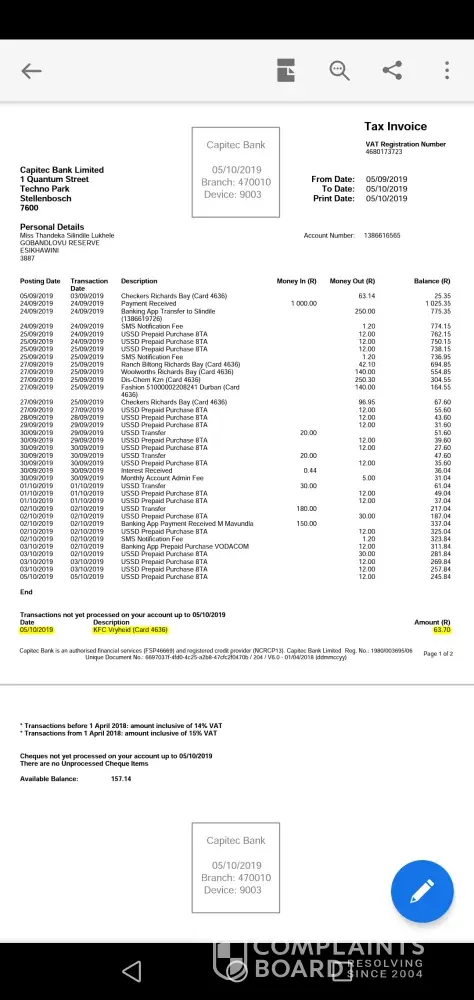Please find the attached confirmation of my order, bank statement with payment online as well as the cash payment at the store. I have also included the picture which has the notification I received after checking in.