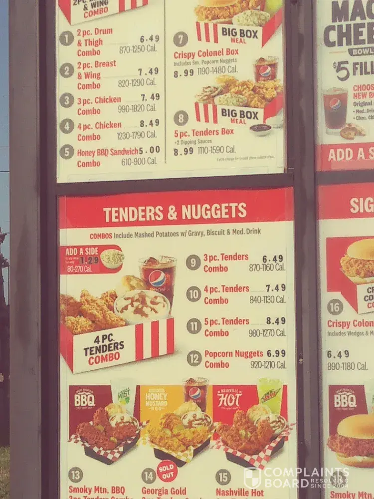 Since that i to short, when you advertise at a price it should be sold at that price other wise it is false advertising would you not think . And it would be bad if word got out about this . like maybe you are price gouging at this KFC.