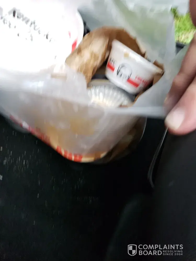 I am complaining because tonight 8/25/19 I ordered food from our local KFC. First offf the girl that took my order was rude and and acted like she didn't want to take my order. Then she gave me cold mashed potatoes and gravy and our drinks had no ice. This could cause me to never eat there again. The customer service was bad.