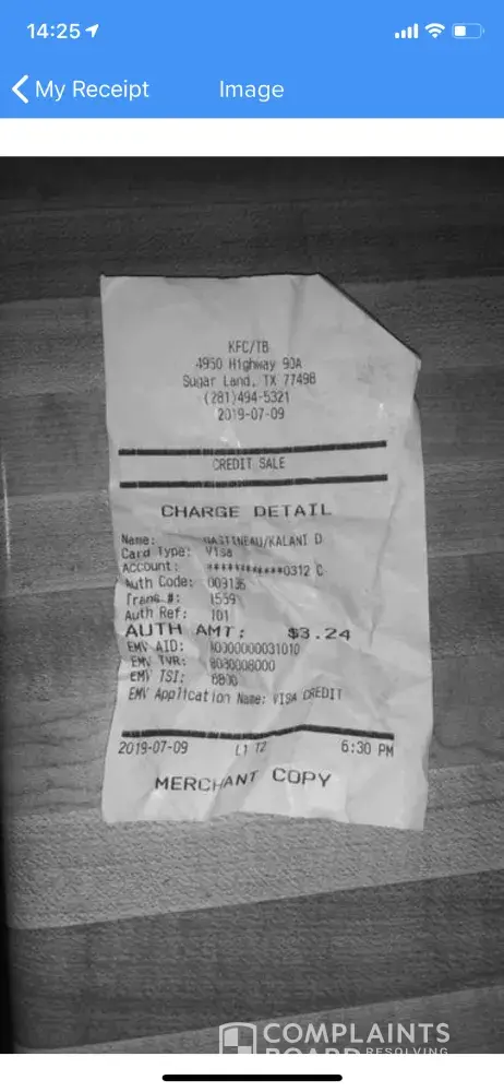 KFC order not filled