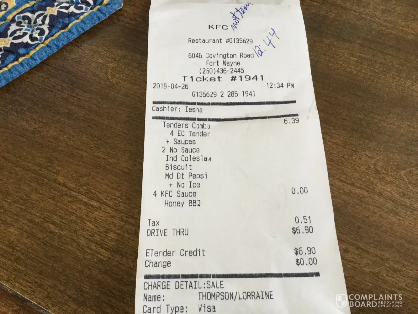 Hello, I wanted to provide you with feedback on my recent visit to KFC. Today, at 9:00 PM I visited the drive through in Philadelphia Strawberry Sq. Plaza, 29th Street. When I paid for my food the young man was talking with his co-worker, using all sorts of profanitiees. Afterer paying for my food, this person just placed it in the takeout area, walking away. He never said thank you. After I got home, opened box the chicken was burnt, biscuit was half done and mash potatoes were cold. I was too tired to take it back for a refund. Please provide further training and food preparation for your employees.