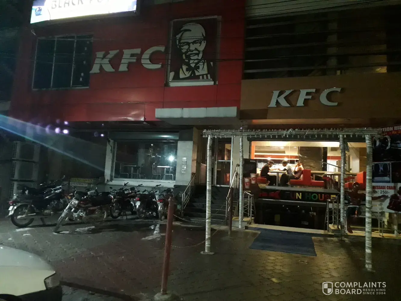 KFC the food, the cleanliness of the place, and no napkins available for customers at all with our order.
