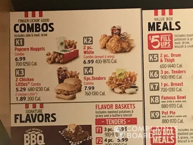 Went to KFC at night to order some food to go. I checked the posted menu in the restaurant and the menu specific showed the following: