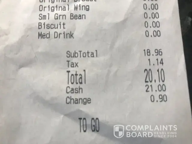 I asked the person that had taken my order why the differences in prices, he said that they had not changed the sign yet. This is false advertising! I asked for the manager, told her that the price on the board for the K2 was $6.99 and I had been charged $7.29. She said that I had been charged $7.29 because I ordered white meant (breast & wing) I told her that this was not true. The menu board said specifically $6.99 for a breast & wing combo (see photos). The same thing happened with the extra sides. She refunded me the difference for each and did not want to give me the tax that I had paid for each. She finally gave me the tax that I had paid on the $1.00 that they had over charged me.