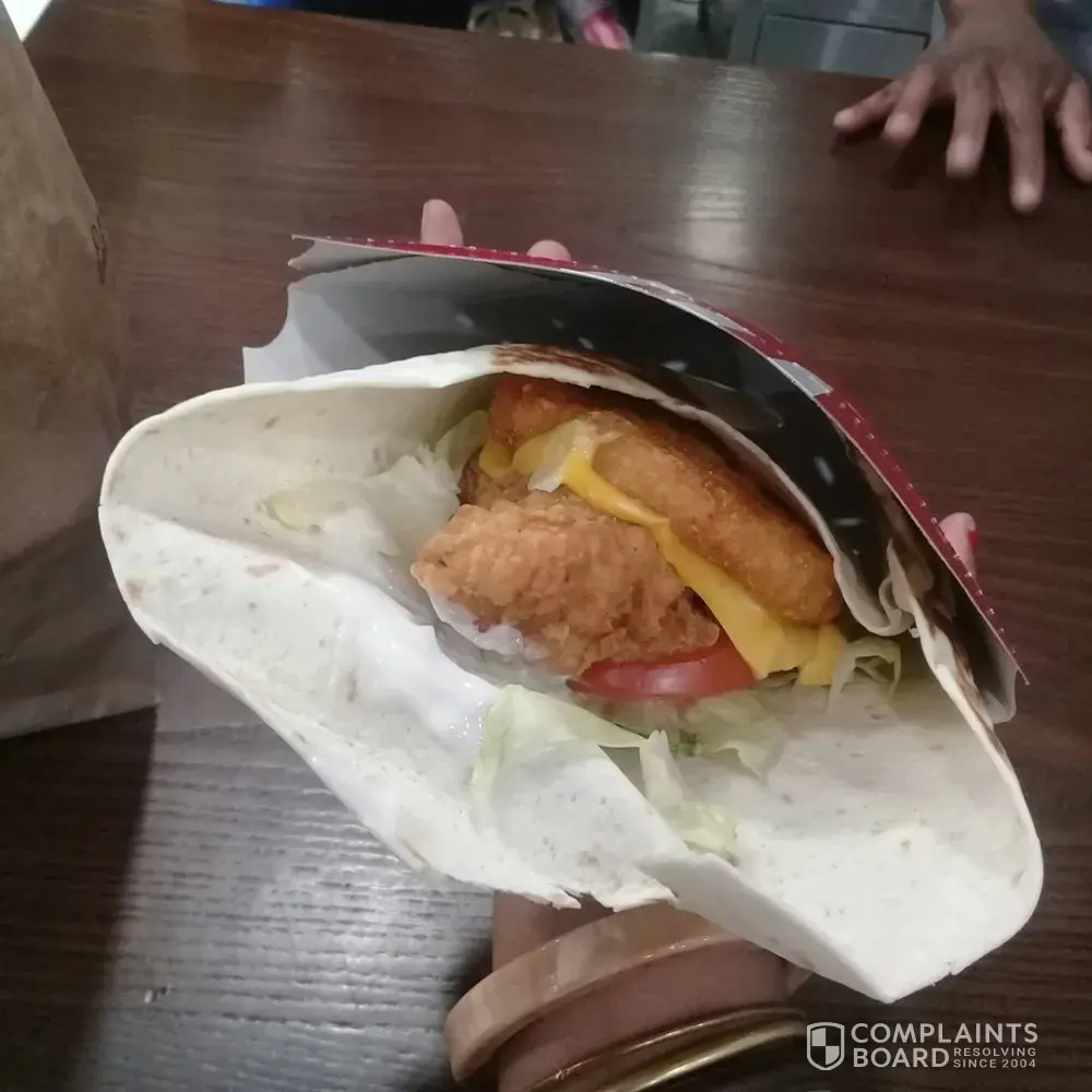 So i bought two box masters at KFC last night and I decided to open my order before I got home. The finger-like tiny chicken nugget was apparently the correct chicken used and the supervisor insisted that everything was done correctly. I waited for them to correct the order but what is more frustrating is that it came back the same. I had no choice but to request a refund. I will never ever set my foot at KFC and I will make sure my family doesn't too. Customer service is very poor and I never thought false advertising existed at KFC. I have never seen a box master with the ingredients so tiny and lined in the middle of the wrap. I could literally wrap everything that was inside with a quarter of the wrap