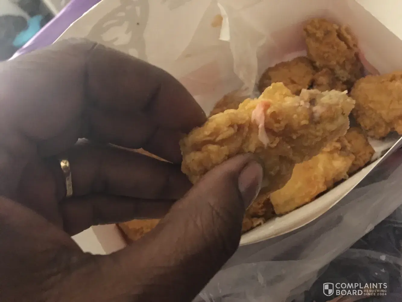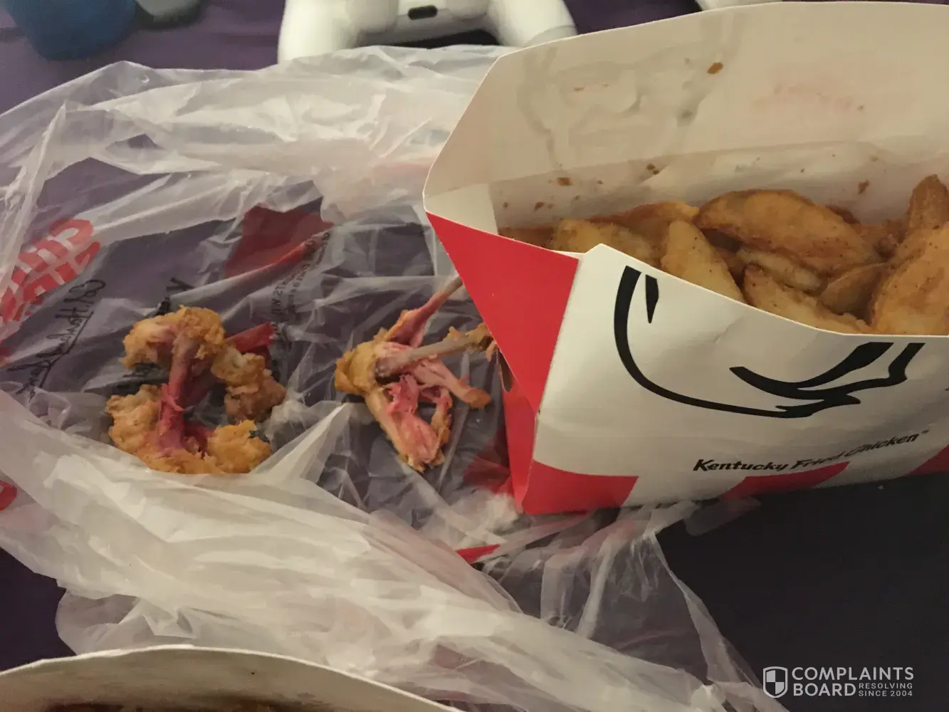 I went to the Kentucky friend chicken on route 175 some time between 6:00 and 7p.m. to get some wings. I ate some in the car on the ride home. When I got home and saw them in the light, I saw that all the wings I had eaten were bloody and severely undercooked. I took them back and got a refund, but I am outraged. This is unacceptable. People get sick eating...
