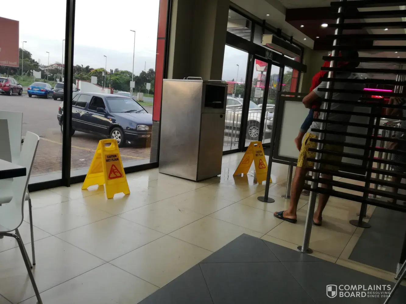 Please be informed that I am at KFC mount Edgecombe at the Caltech garage opposite the McDonald's. The store is FILTHY as ever. EVERY single table is dirty. The air con is leaking and there is water all over the floor besides just water, there is good crumbs and stuff all over. It is 5:25am and all the breakfast menus are up but the staff refused to give us the breakfast as they say breakfast starts at 6am. The attitude of the staff is disgusting, they have not customer service etiquette at all.The toilets have no toilet paper and looks as if It has never been cleaned.I have pics to prove how.bad the condition of the store was. Someone needs to do something about this asap.