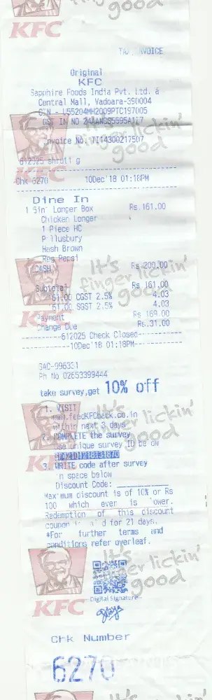 Surprised being in third world country, gladly paid for the mayonnaise. However, they aggressively pursued donation for the under privilege. Being generous and privilege, I allowed her to decide the amount whereupon Indian Rupees 25 was collected.