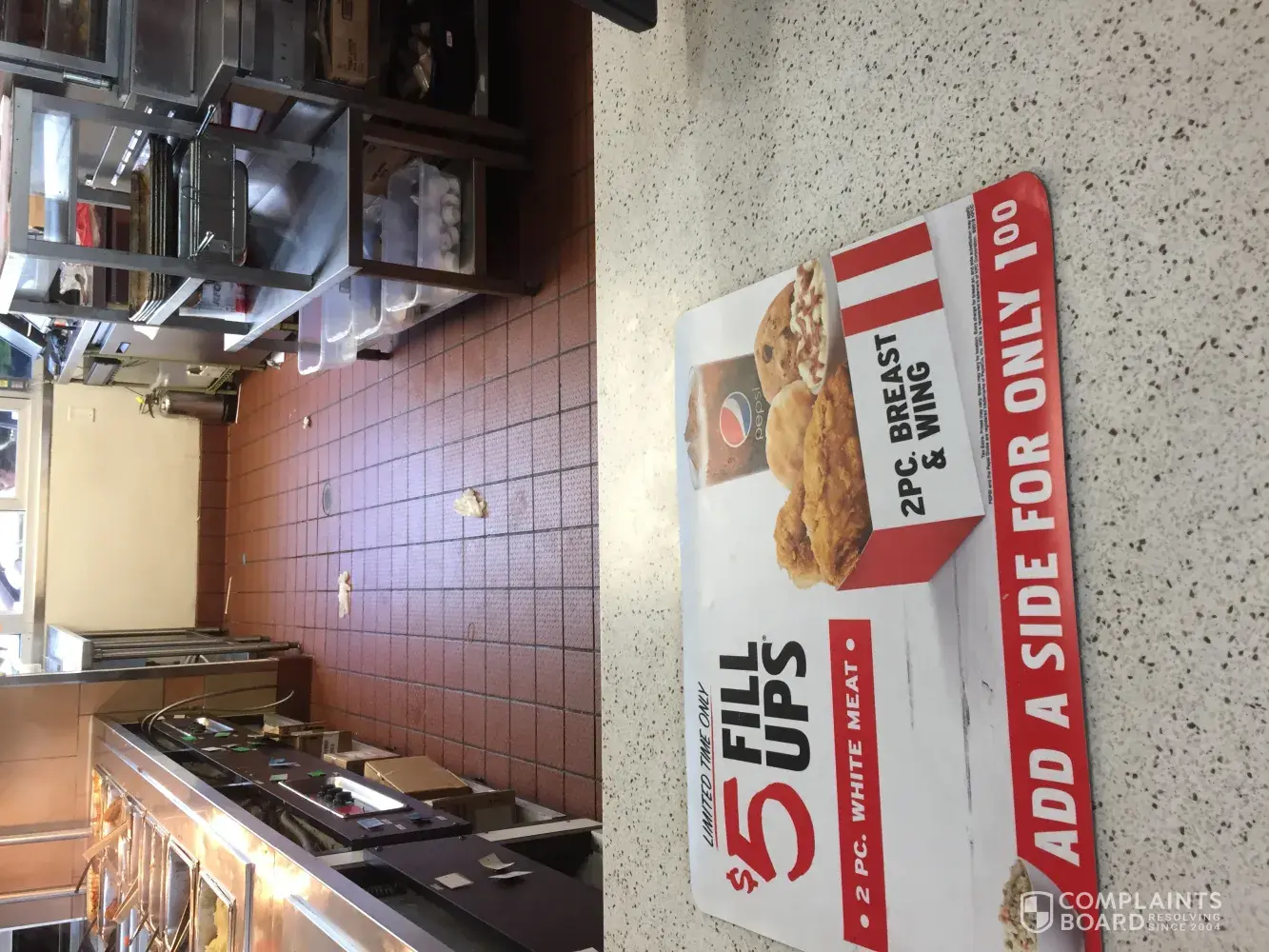 My main complaint is that I was given old chicken that was not hours old but days old. It was dark, dry and some pieces had skin and some didn't. This is not the first time this has happened and I will never go there again.