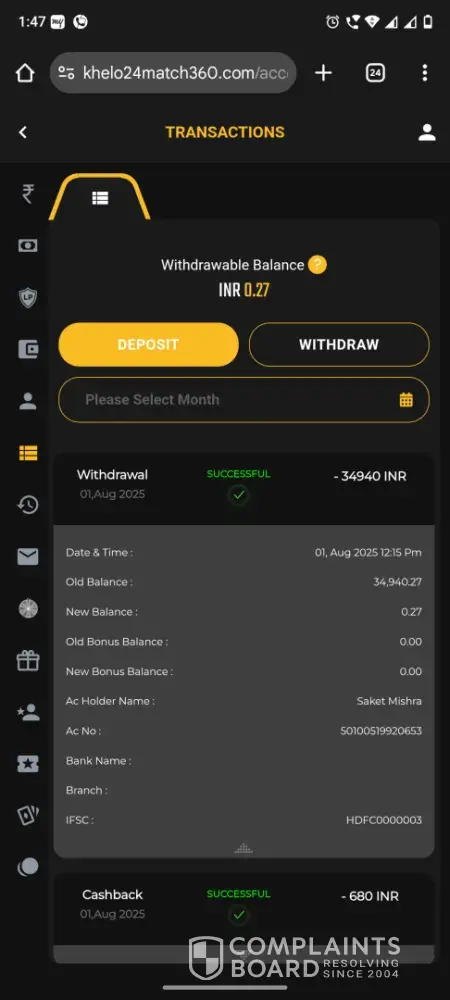 I am filing this complaint to warn others and urge Khelo24Bet to take immediate action. If I do not receive my money or at least a valid update and UTR number within the next 48 hours, I will continue escalating this on more public forums including Trustpilot, Reddit, and social media.