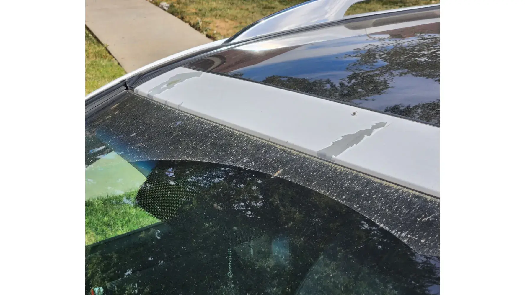 2014 Kia sorrento pearl white paint peeling off above windshield and side arm