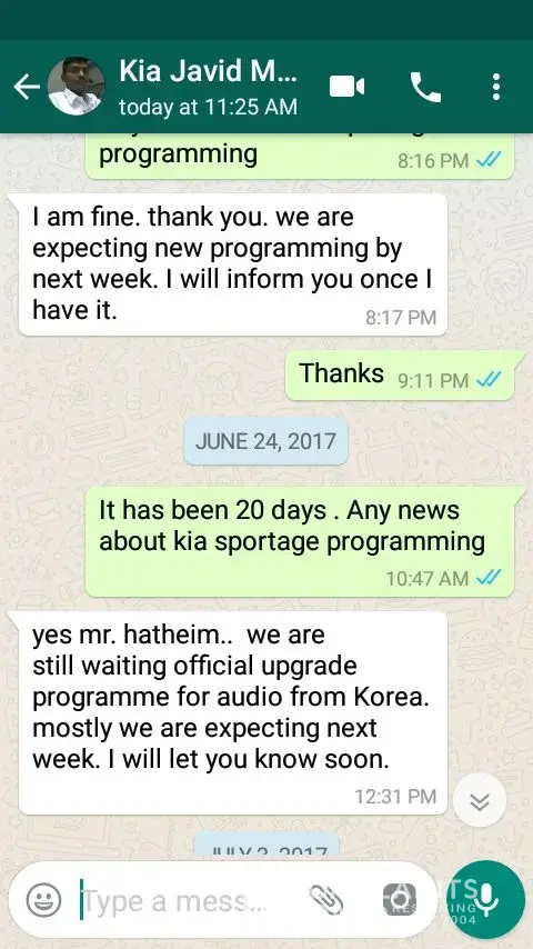 I, Ramin Ghaderi, have purchased an optima (2017) several month ago and since then I have requested for auto software updates, which the Atlas Khodro; the official representative of KIA company in Iran, claims that have not received from the KIA company after 8 months that has passed from 2017.