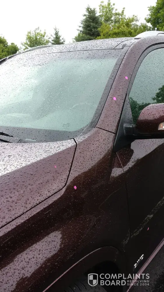 I have a 2014 KIA Sorento that has paint chips all over it. I even have some on the roof. I took it back to the dealer and they are saying it is paint chips. I am wondering how you get paint chips on the roof? The dealer did paint the hood for me as that was really bad over 50+ chips. The hood seems to be holding up much better then the factory paint job. Because of this it is safe to say that KIA does have a paint issue going on and needs to take responsibility for it. I took my SUV to a none bias auto repair shop. They stated the paint is water base paint and is painted on very thin. For this reason the paint will easily chip and fade. So far KIA is not taking responsibility for this but the dealers are trying to help some. But only if you have a fairly new vehicle and are considered a good customer. I do appreciate what the dealer did but feel that KIA needs to do a Recall and correct the paint issue on all KIA vehicles. I have attached pictures. The pink dots is the location of the chips that I could find easily in a 30 minute time frame.