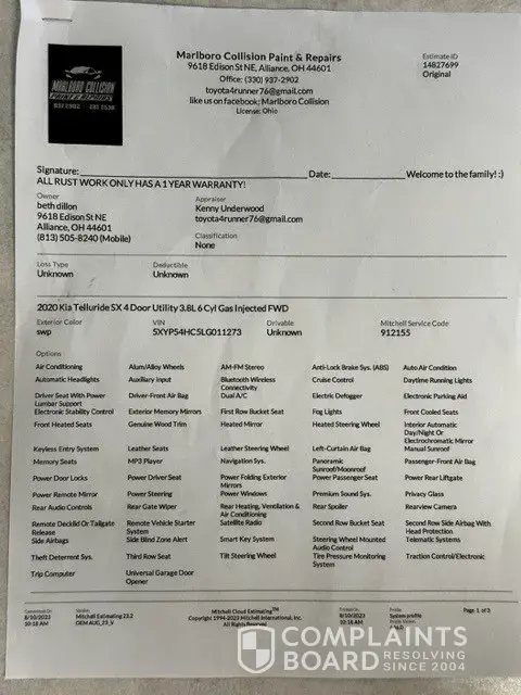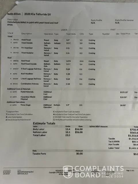 The paint is peeling off in sheets on the roof by my windshield and in spots on the hood & other areas. It's been happening for awhile, but the sheets coming off on the roof of the car has been in the last 2 weeks (it's 8/21/2023 now). I've called the dealership twice (in Concord, CA) and have not received a call back regarding options. I've seen on forums that this is a known paint/adhesive issue with Kia. What are my options to resolve this matter?