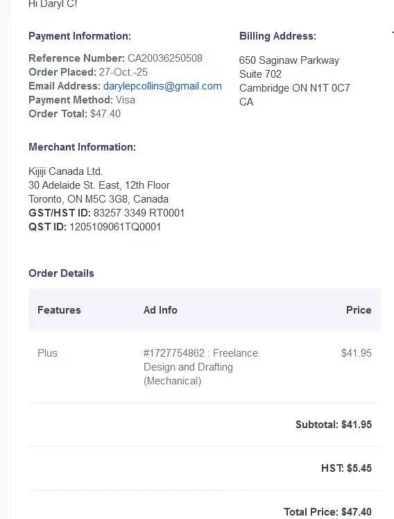 I paid for an Ad posting on the 27th of October, 2025. It has been a week with no posting, and 4 e-mails I still have not received a response. Their Customer Service has to be the worst. I have asked for a refund to their support@kijiji.ca, the e-mail comes back unrecognized. I have tried calling to no avail, is this company now legit. I posted with them...