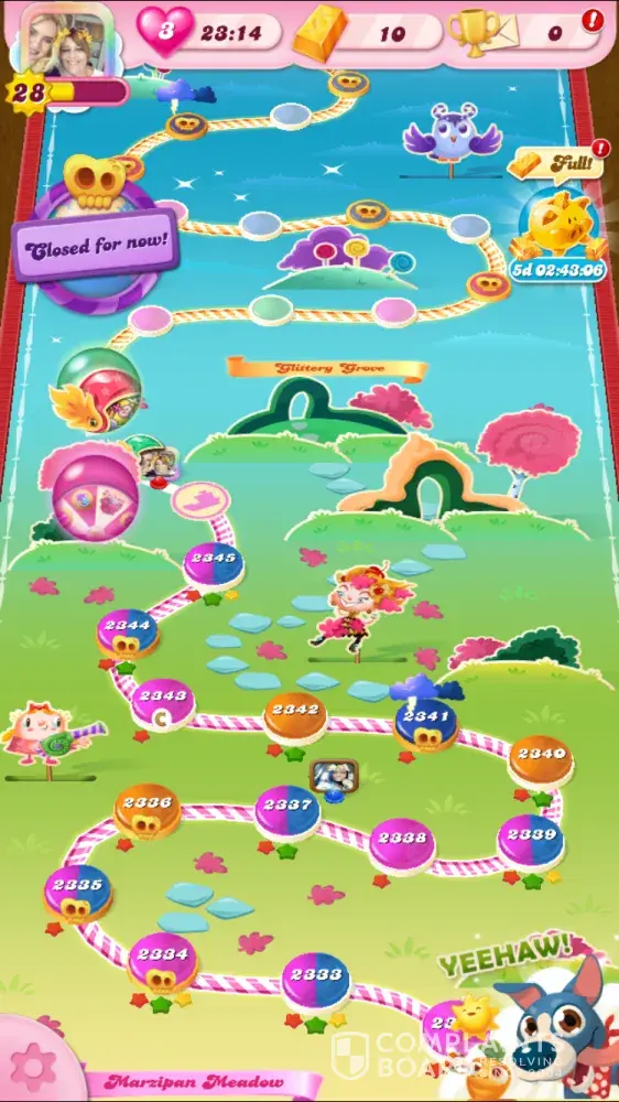 I am on level 2345 i passed that level and it won't let me progress, you gave me 20 bars to retry this level again, I lost all that because the technical support said to delete and reinstall cc and face book, I've done this I've watched all of you tube videos in how to fix problem, I got a reference number and was told to apply this to technical support I have done this they have not responded, I've played the game for four years without a hitch, please fix this problem I'm furious now x