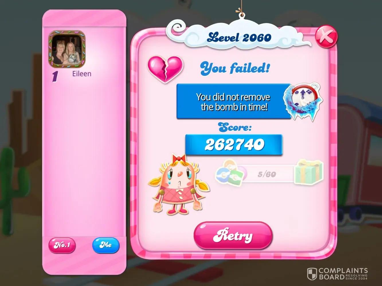 Am stuck on level 2060 because even though I have won this on several occasions it keeps telling me I've failed.