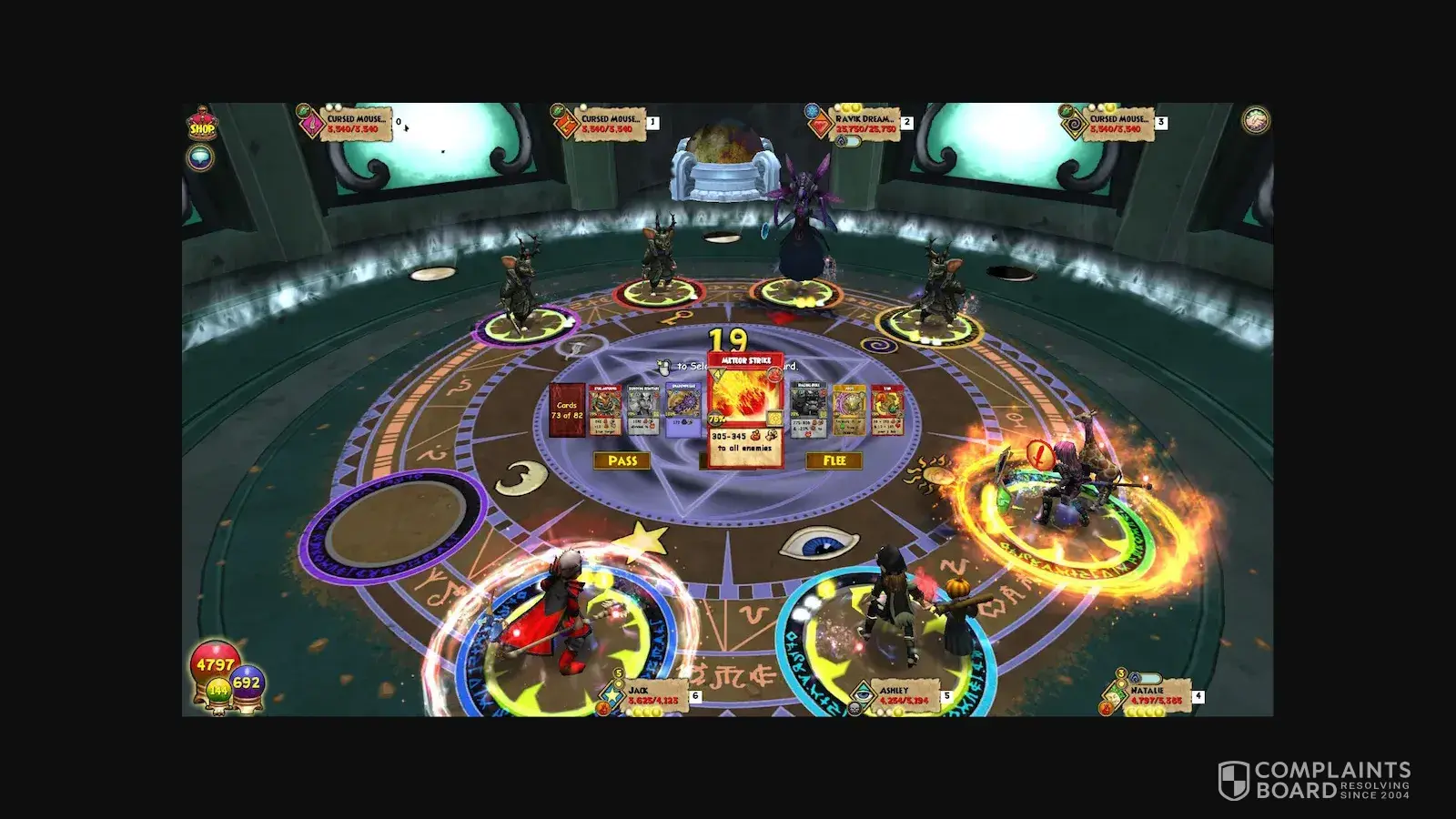 Been playing wizards101 on and off for some years now. It is fun at the start but over time gets so damn frustrating. With the higher levels the foe getting harder and harder to kill and the spells at least the ones I have are not as powerful as I would like so I get defeated over and, over, and with the blanks or the fizzles and fighting with two foes who are bombarding you with there spells but you are lucky to get 1 ever 4 rounds so no matter how hard you try you are defeated in no time what so ever. It gets very old after a time going over and over to defeat a foe I have spent weeks on one quest to move on. I have also noticed some players have cards with powers of 15000 and more and kill the foe in no time what so ever while I struggle and I have tried to find cards with higher power to no avail, also some get one good card after another while others its every so often. I have contacted KingsIsle on how to i improve m y odds with no avail Do they shoe favoritism to some and no others and it seems they will not let you move on till the want you too . When the game becomes more work than fun I think its time to quit and I will never recommend the game to any one it is a ripoff and all they want is your hard earned money