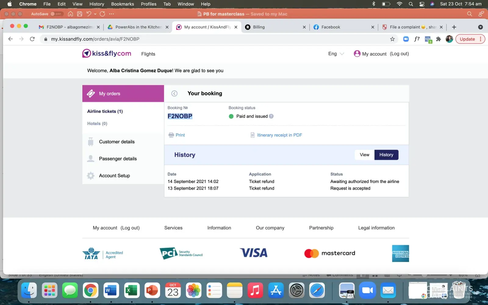 KissAndFly then requested that I provide them my bank information so they can initiate an international wire transfer to my bank account. I thought this was rather strange as I paid by credit card, but okay as long as I can get my money.