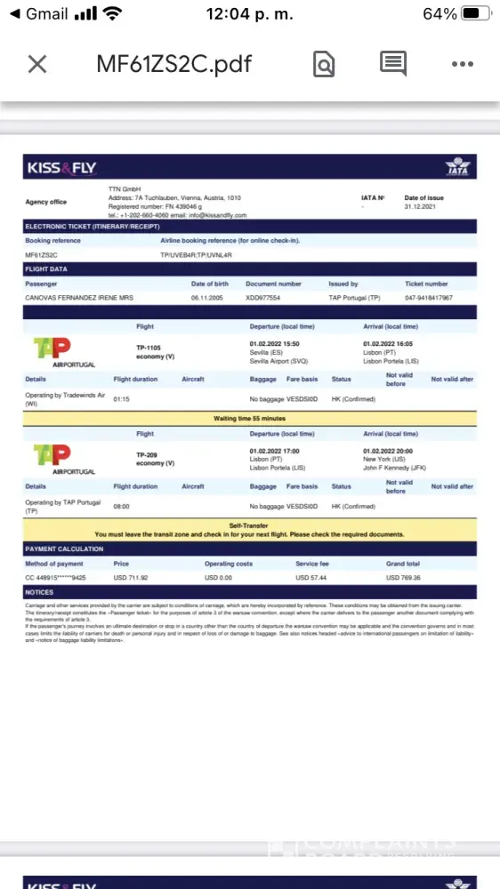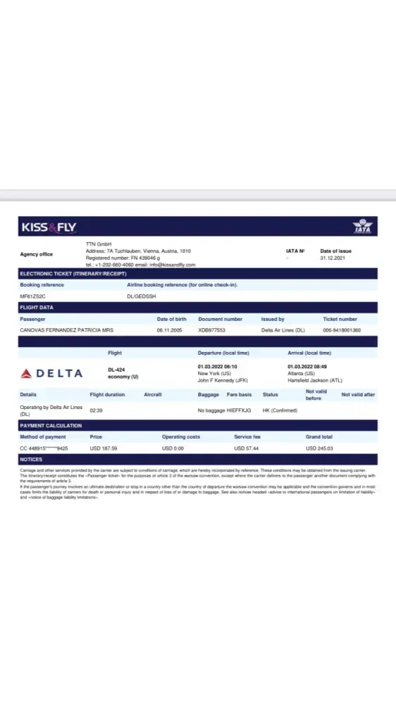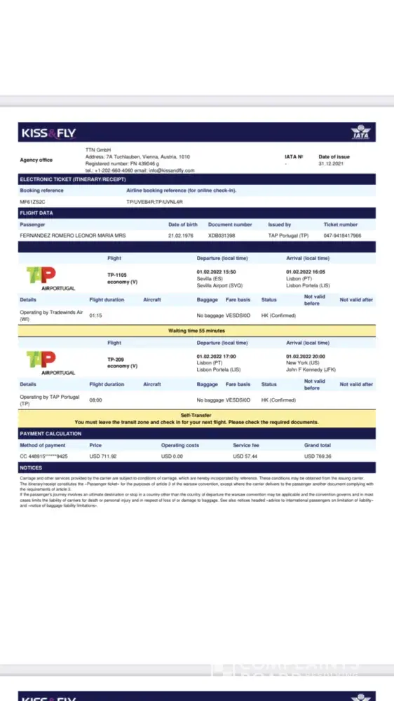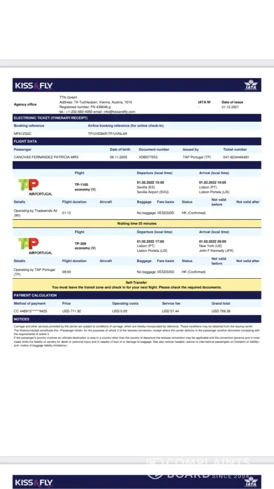 After almost 2 months of calling the agency and spending a lot of time on the phone we've got a notification that said that instead of being refunded for $1570.00 we have to accept a refund of $78.00, (right, seventy-eight USD instead of one-thousand-five-hundred-and-seventy USD) in 24 hours, otherwise even that amount will become unavailable. Even we disagreed with that, we clicked the acceptance button. Imagine what happened. Instead of being refunded/reimbursed, the Kiss&Fly charged our credit card for $78.00 on 02/11/2022