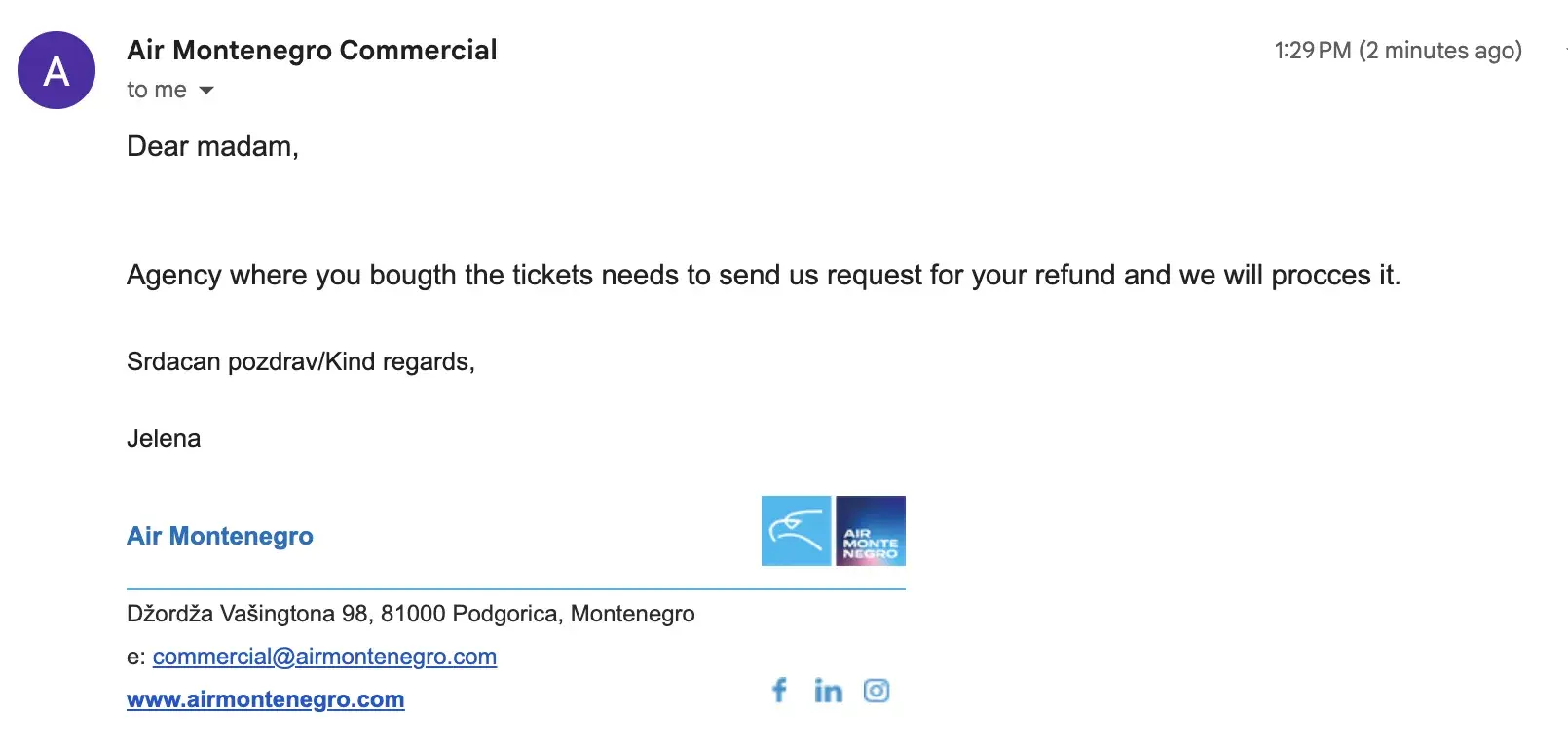When we got back home, we contacted Kiwi.com for a refund on January 14th, but they didn't arrange a solution for us for over 2 months. In March, they managed to get a refund for us, but only a partial refund, and they couldn't explain why. The airline had not given them an explanation apparently, and they told us to contact the airline directly because they had done all they could.