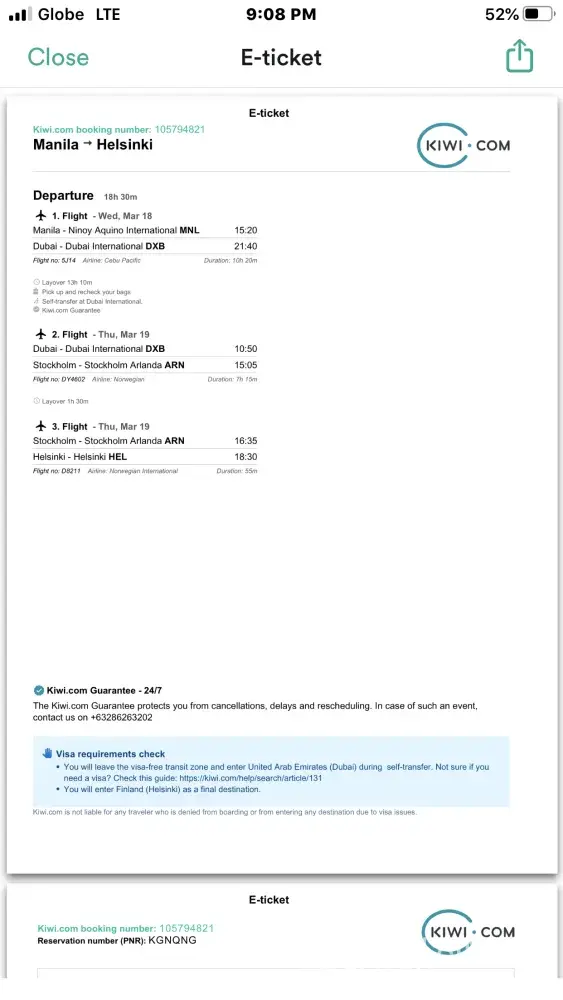 1. Booked a flight through kiwi.com and paid for it.