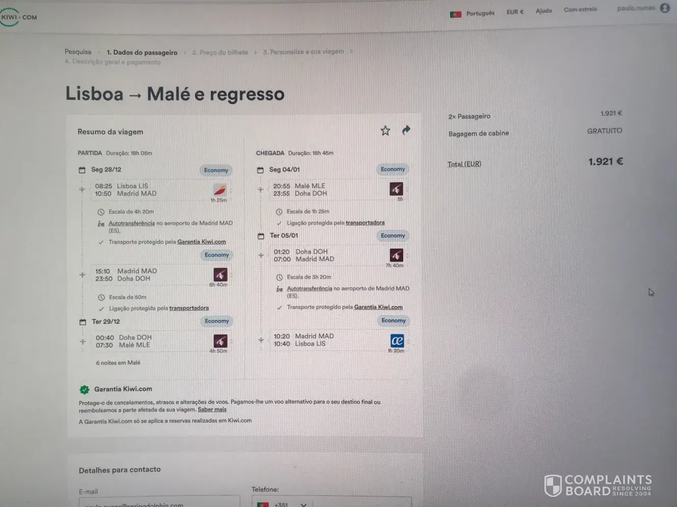 Yesterday, after all this confusion, kiwi send me a flight proposal for the entire route, that is, for my final destination, again including a tap flight, with similar schedules, for a similar amount, … but as I had already paid via iberia, there was nothing to be done,