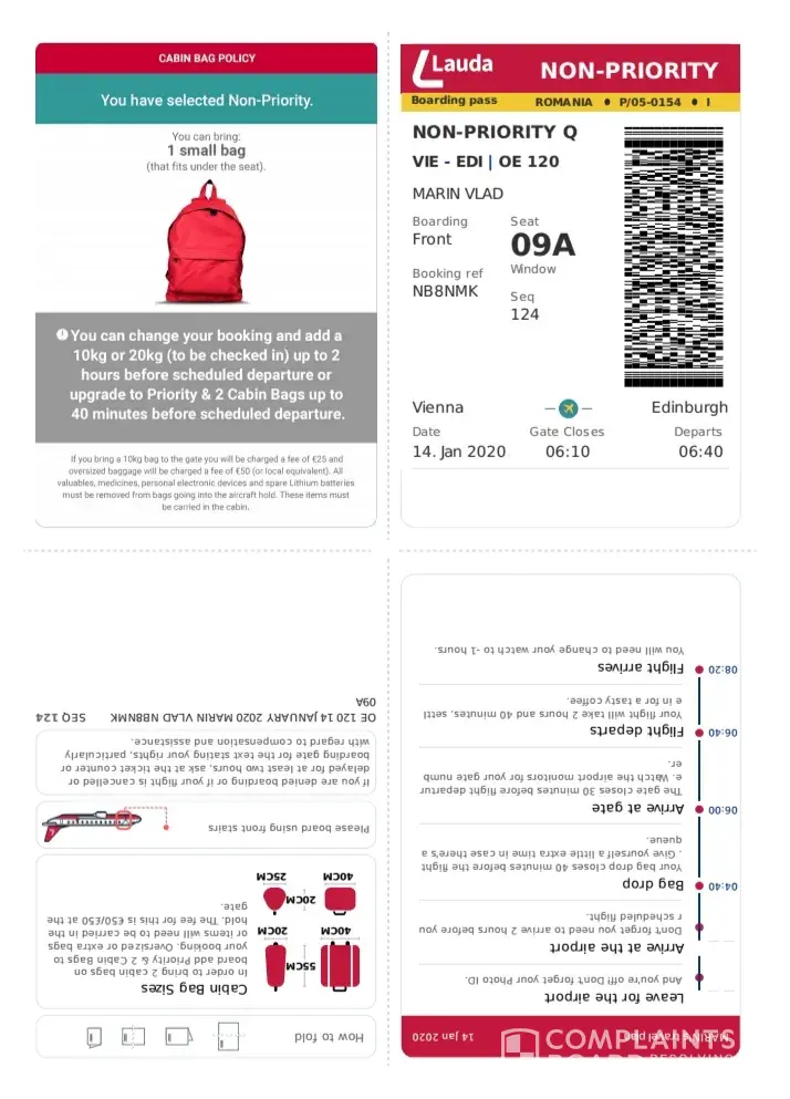 Flight No: OE347 Date of flight: 13/01/2020 Airline: LAUDAMOTION Airline