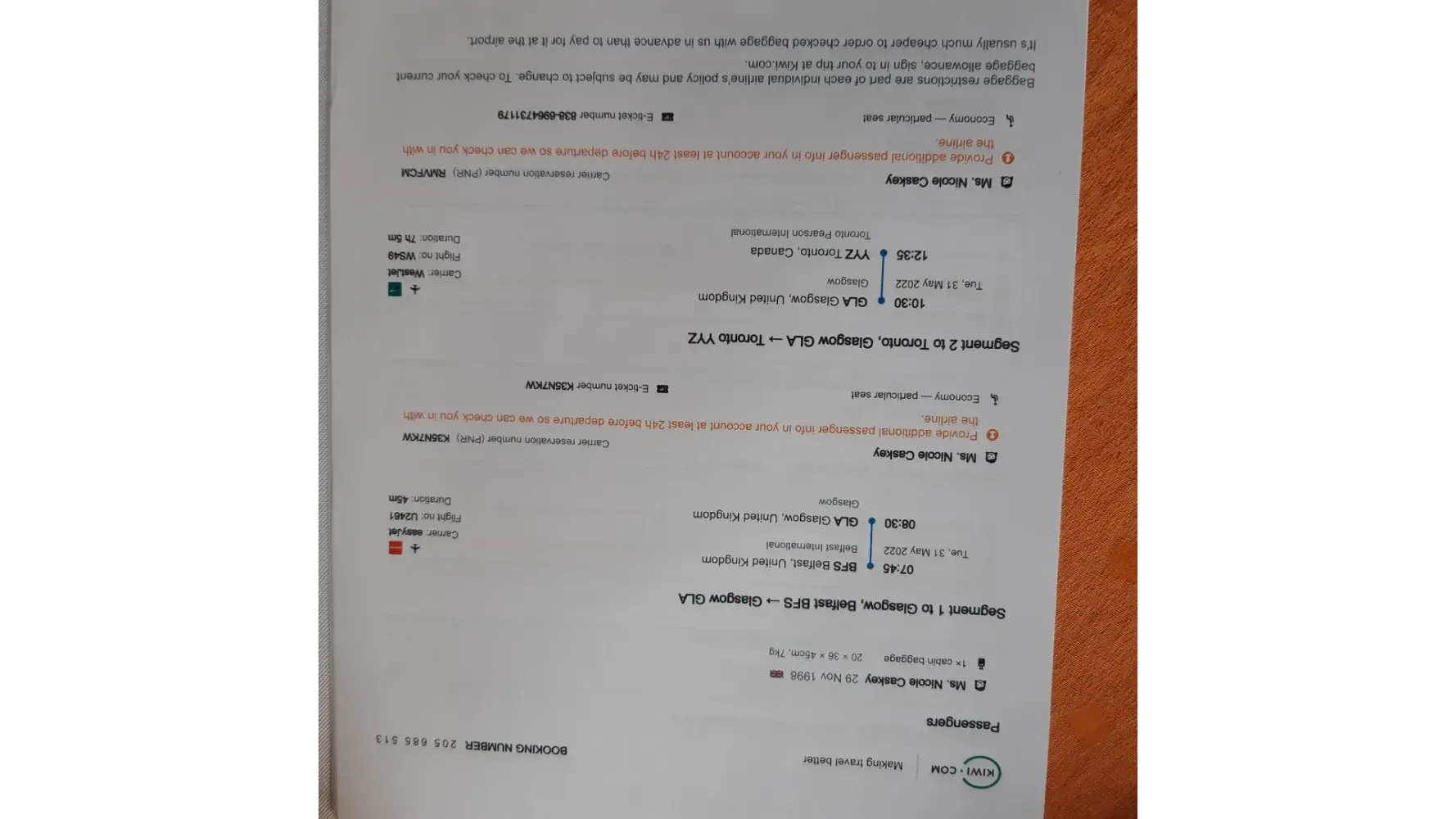 On the 08/03/2022 I booked a trip from Belfast, Northern Ireland (BFS) to Toronto, Canada (YYZ) through Skyscanner.com, which connected me to Kiwi.com. It was through this company (Kiwi.com) that I booked my flights.