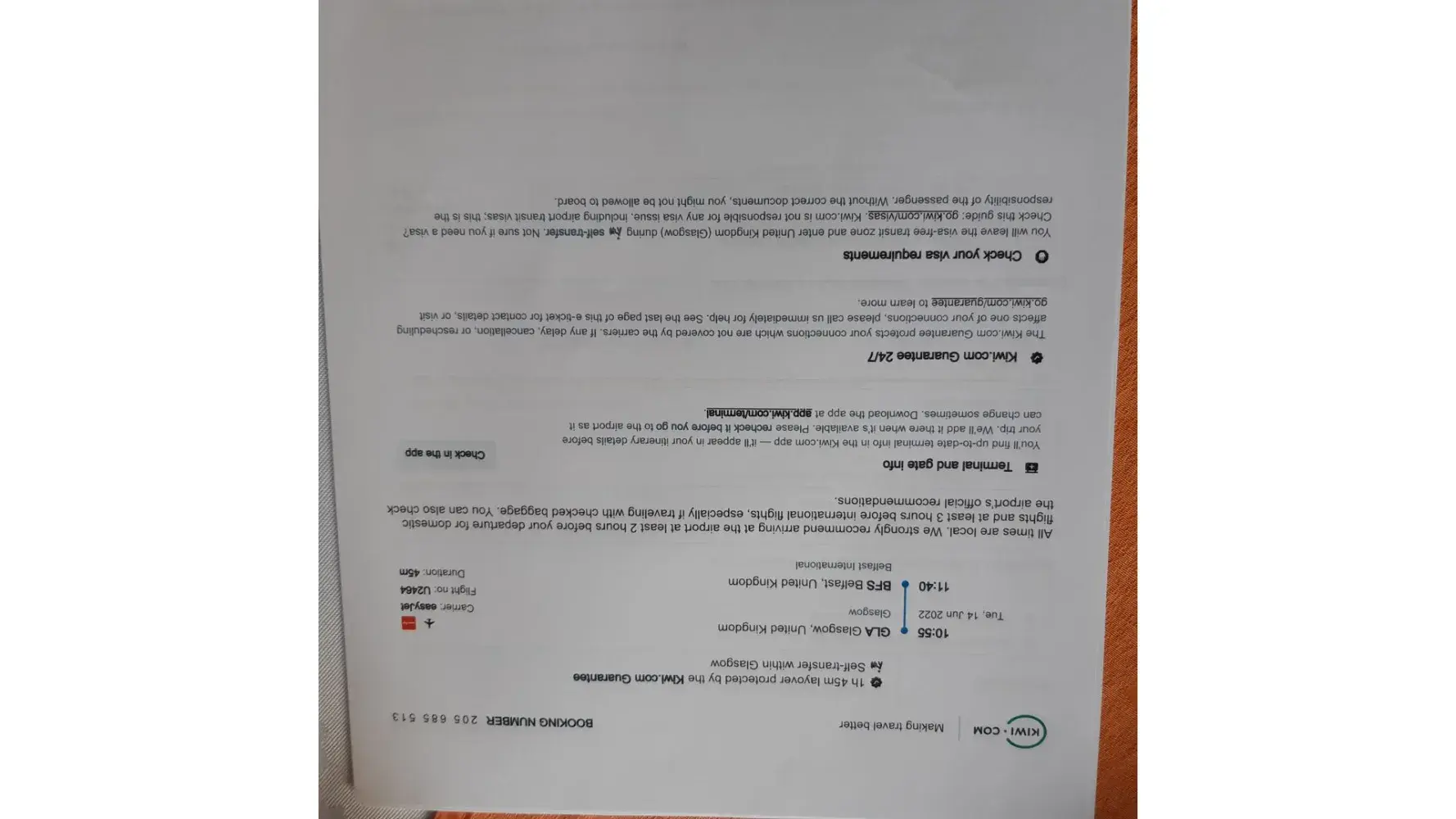 I booked through KIWI.COM to go from London Stanstead to Alicante Spain , a Ryan Air flight 11th May 2022 (one way) flight number FR6647 at 10.40 am carrier Ryan Air, Booking number [protected] .