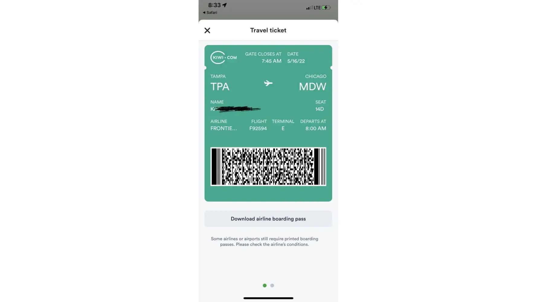 When I contacted Kiwi.com about the flight changes, they informed me that a 24 hour flight change does not qualify as a major disruption, and therefore no alternative flight option would be given to me, and only £8.29 as a refund would be afforded to me. I do not believe that 24 hours is a ‘minimal’ disruption, as it would not only completely destroy my plans, but it also meant that I would be left in an airport for a 25 hour layover. Had I have known that the company would be able to change flights for that amount of time, I never would have booked the ticket.