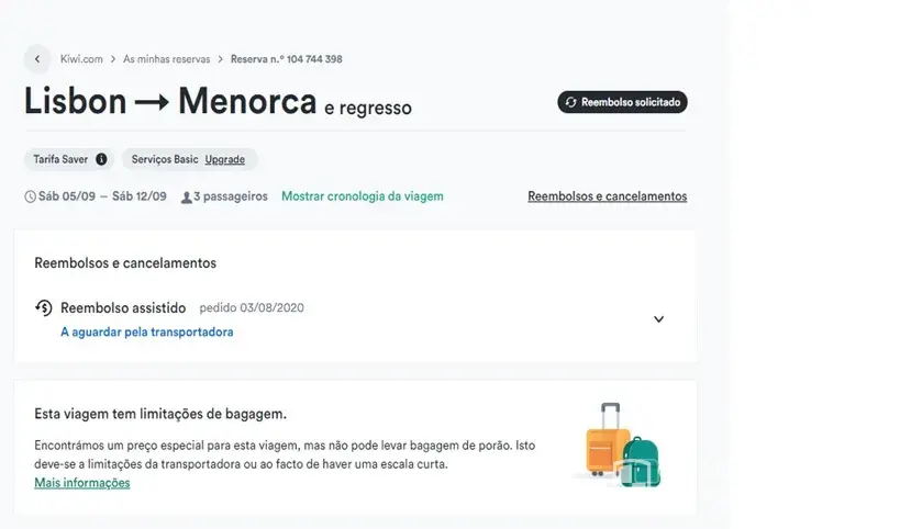 Booked a flight Lisbon LIS - Menorca MAH -Lisbon LIS in September 2020 and applied for a refund in August 2020 because my flights were cancelled (covid).