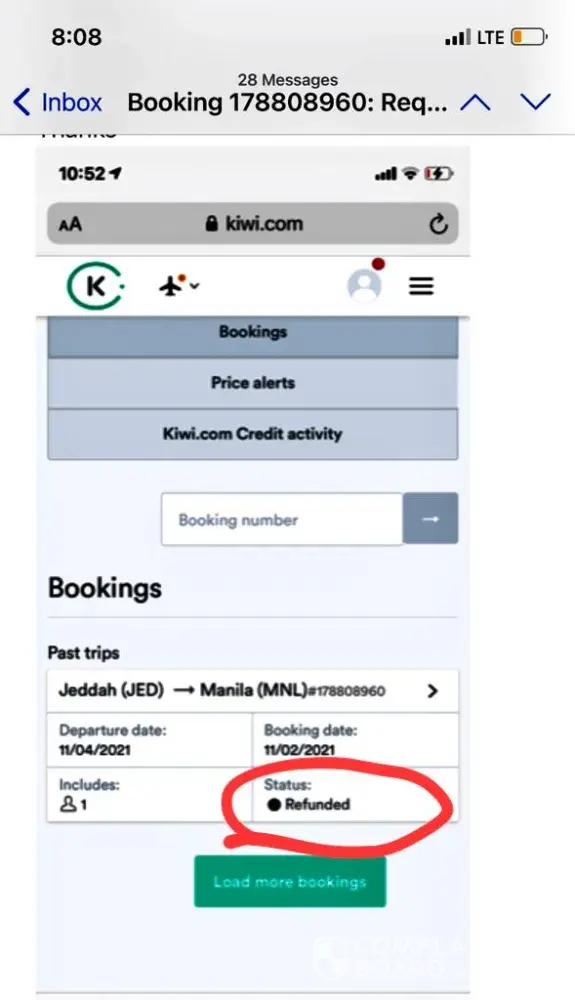 Booked with a flight Kiwi Booking number [protected] January 2021 and then received to below message from them.