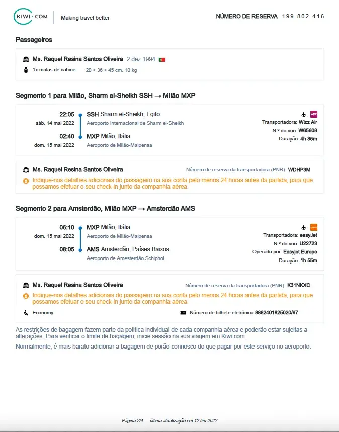 I have booked and paid for a flight with Kiwi on 12-02-2022. I bought a trip from Sharm El Sheihk (Egypt) to Amsterdam (Netherlands) with the Plus insurance, but I inserted my e-mail wrong. I have my reservation number which is [protected] but I cannot contact them since they only answer phone calls 14 days before the trip, I cannot use the chat or the e-mail because I cannot access my flight from the app (since it's not connected to my email).