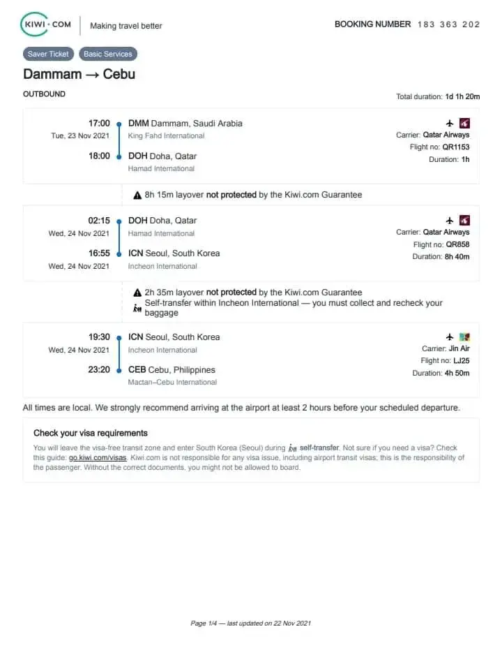 Kiwi BOOKING NUMBER - [protected]