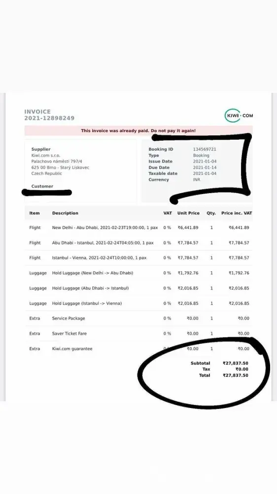 Back to December 2020, my flight was cancelled and till today, 20th July 2021, they did not refund. In the initial days, they were making stories saying they have requested for airlines for refund and have many refund requests. I believed and waited and after few months they started ignoring my messages. These days they did not response at all. Finally, I contacted the airlines. They said they have already refunded the amount on 15th of Jan but this kiwi.com agency is cheating me saying no response from the airlines. I think they do not have any intention of refunding me. They are only trying to make me give up.