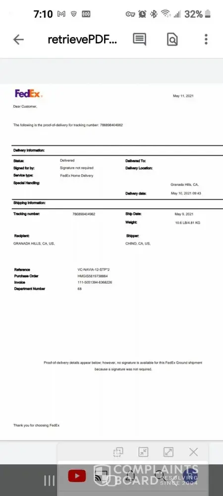 Verified customer This complaint was posted by a verified customer. Learn more