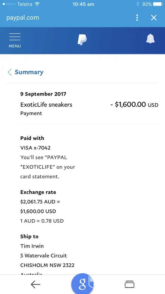 It was really frustrating because I was really looking forward to getting my new kicks, but it seemed like nobody was willing to help me out. Eventually, I had to go through PayPal and amex to get my refund. It was a real hassle, and it felt like the whole thing was just a big scam.