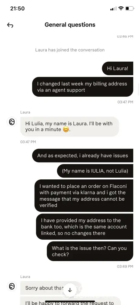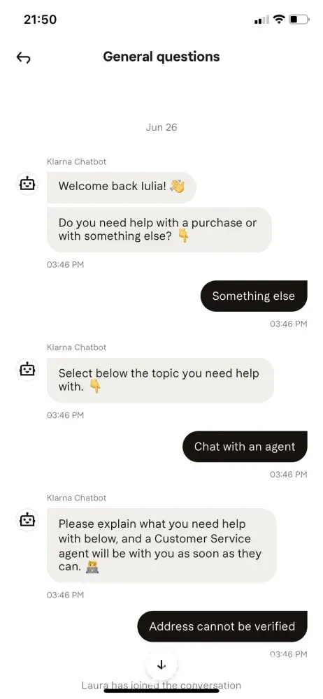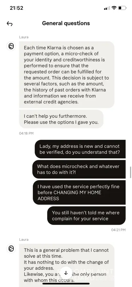 I've changed my home address around mid-June and updated all my accounts for different services and online shopping. I also informed Klarna, just to make sure i won't face any difficulties in case addresses don't match. I contacted customer service and via the agent my details were updated, since you cannot do that by yourself or from your account. And from that point on, issues started.