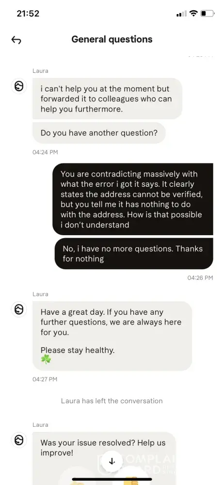 On almost every single purchase i wanted to do using Klarna invoice, i kept getting "We cannot verify your address" error. Only maybe once or twice it worked with some providers and then on a second attempt even with them it stopped.