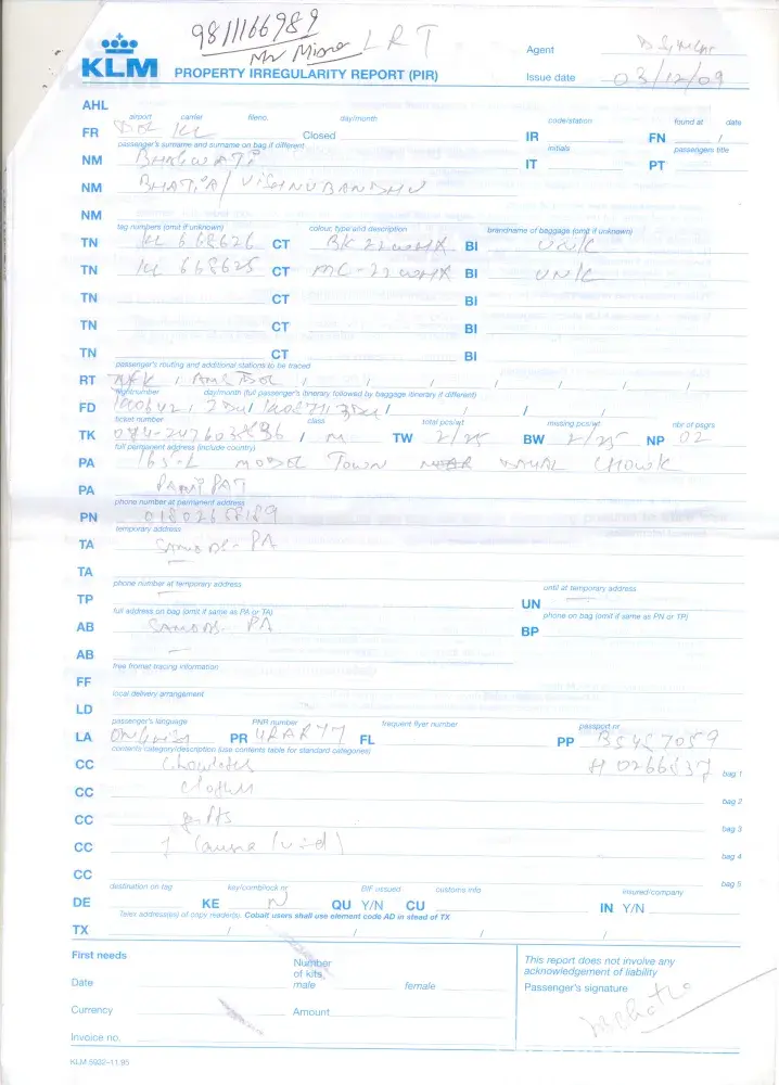 I am now in the process of demanding (via Email!) that KLM fly me free of charge back to Amsterdam, Birmingham and Manchester to search through the unidentified luggage myself. However if they do agree to this, I can assure that non of my luggage will be travelling in the 'hold' of the KLM aircraft this time!