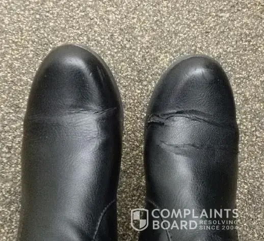 My daughter bought a pair of women's black ankle boots for me and I wore them three times and this is what the right shoe looks like already! The left foot is still in good condition, but as you can see, the vinyl or whatever the "coating" in the shoe is, is peeling off! There's no way I can fix this! She doesn't have the receipt so I can't return them to the store, but I feel horrible that she wasted do much money on a useless, cheaply made gift for me. I have shoes like these from a different manufacturer, tat I have worn for almost three years and are just now beginning to show creases on the top of the foot. But the material isn't peeling! Shame on you!