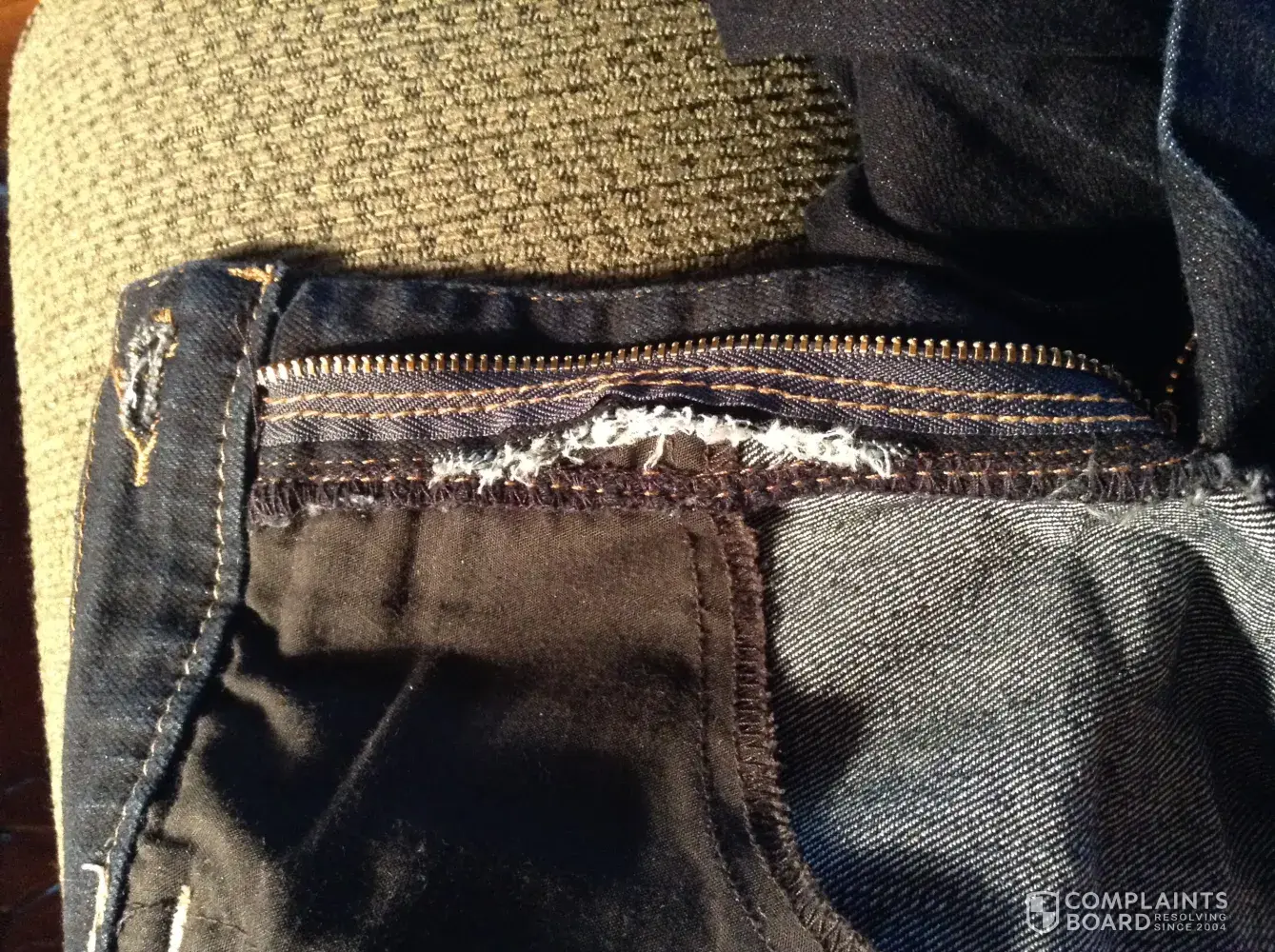 I have one pair that I didn't wear a lot because I would save this pair to wear on the weekend. I've maybe worn them 3 times and washed twice. After purchasing this pair, I tried them on at home and found the zipper would show a little but I thought my tops would cover that. As you see in the picture I'm sending, there is a slight deviation in the way the zipper was stitched. Therefore, allowing the zipper to be pulled from the fabric. You will see how the material is frayed. I believe this happened because it was poor quality material or poor workmanship or both.