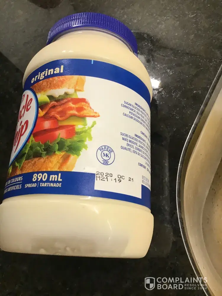 I just opened an 890ml jar of miracle whip with an exp date October 21 2020 upc# [protected]